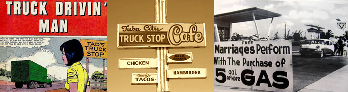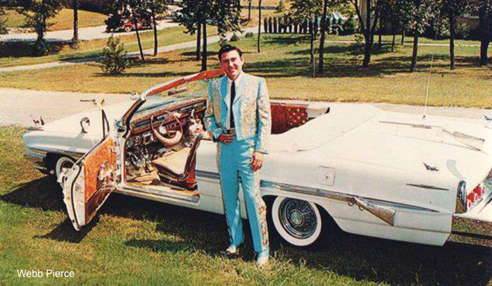 Le Western swing des années 40-50 se coule naturellement dans la promotion de la voiture particulière. La frontière est mince entre l’acte artistique pur et la publicité sponsorisée. A toutes les étapes de la vie, la Cadillac est là comme une figure de style obligatoire. Elle émancipe et n’est a priori plus réservée aux classes supérieures (on est en droit de s’interroger sur les revenus de ce simple gars de la campagne qui bosse dans une ferme !). Elle donne l’accès aux plaisirs de la ville, et accompagne les futurs époux jusqu’à l’autel : c’est un condensé de rêve américain. Au-delà de l’émergence d’une consommation de masse, c’est aussi le tournant de la banalisation du bus de tournée, précédé pour les groupes d’attelages plus ou moins sophistiqués de berlines avec remorques, immanquablement peintes avec des slogans publicitaires annonçant l’arrivée imminente d’artistes condamnés à d’épuisantes et incessantes tournées.