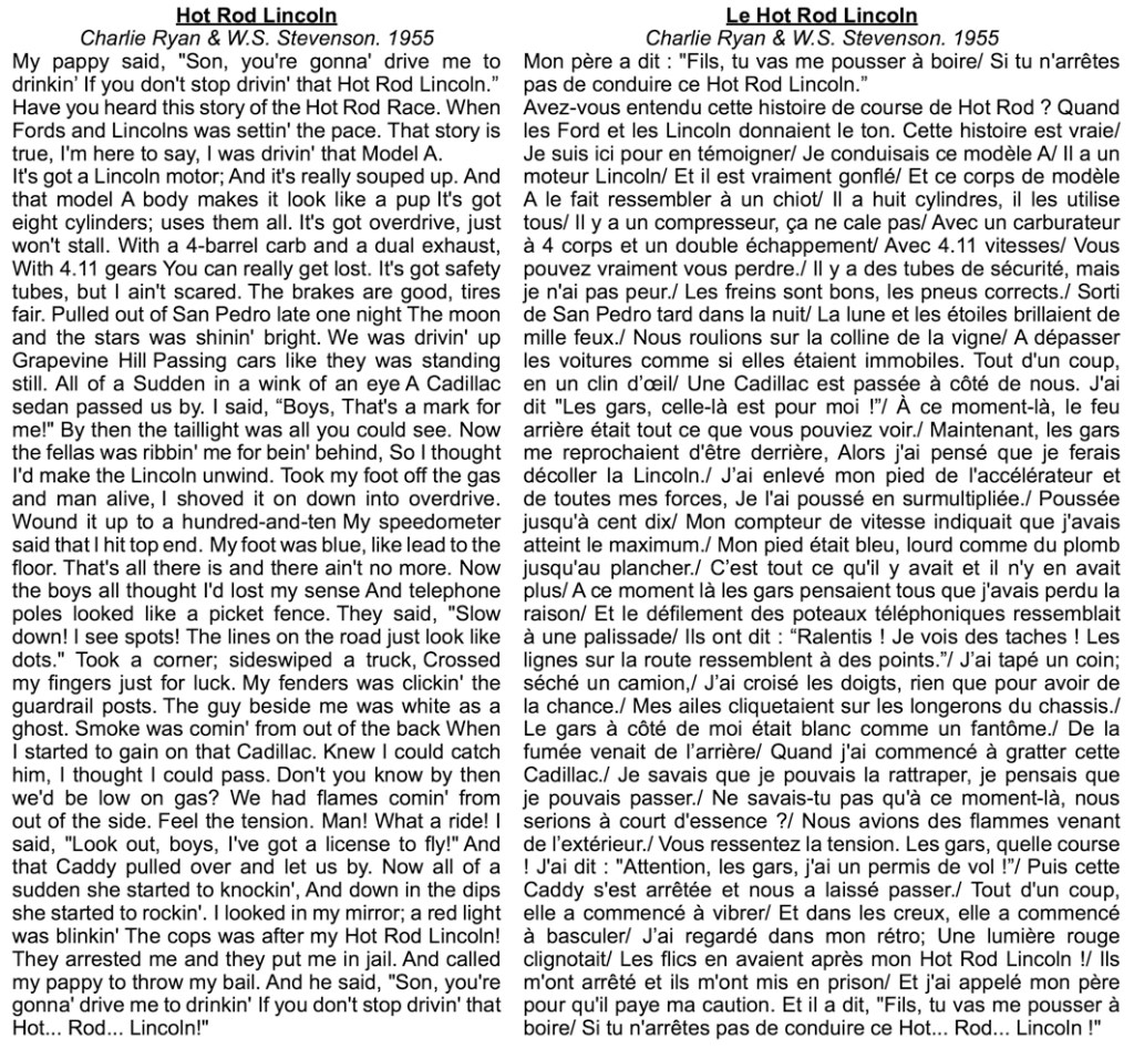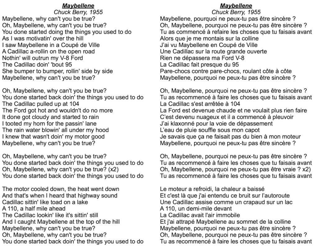 On notera que Chuck Berry en 1955, lui aussi est exclu du club des propriétaires de Cadillac dans Maybellene, son tube est fortement inspiré du vieux fiddle-tune Ida Red popularisé par Bob Wills et décalque évidente du Hot Rod Race d’Arkie Shibley de 1950, traité ci-dessous. Car il convient de le rappeler, Chuck fut aussi auteur compositeur interprète de Country Music.