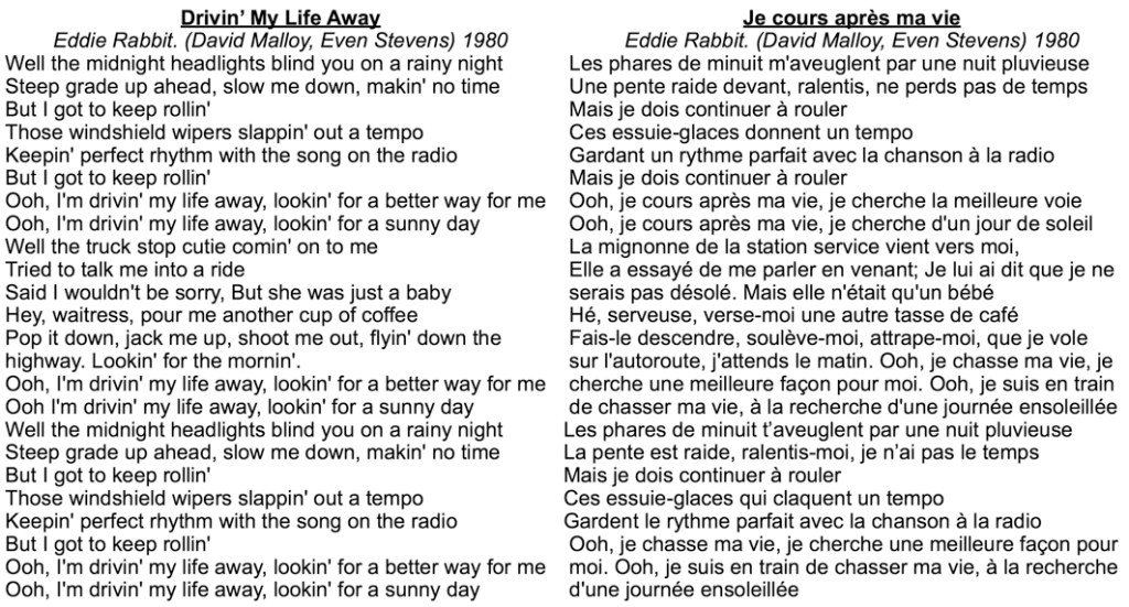 J’invite, toujours dans l’article sur la mort dans la Country Music, à vous remémorer les larmes inquiètes de Roy Acuff en 1938, déplorant le peu de religiosité des témoins d’un tragique accident sur l’autoroute. De même, le tableau fantastique de Bringing May Home où un automobiliste prend en stop le fantôme d’une gamine pour la reconduire chez elle ! L’autoroute peut aussi devenir métaphore de la destinée humaine, un voyage au bout de la nuit dans un vide oppressant. Cette crise existentielle est un invariant qui ressort régulièrement dans les chansons sur la route et la conduite, de Leon Payne en 1949 à Eddie Rabbit en 1980.