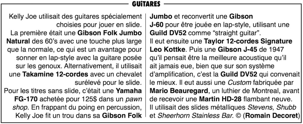 C’est en 2013 que Kelly Joe Phelps fut diagnostiqué comme atteint par un désordre neuropathique, une rare maladie ulnaire qui l’obligea à cesser de tourner et d’enregistrer. Cet artiste extraordinaire avait 62 ans lorsqu’il est décédé chez lui, à Council Bluffs, dans l’Iowa le 31 mars 2022. © (Romain Decoret)