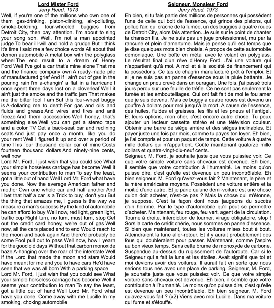 On y remarque cette troublante pépite où fleure une forme de sexualité contre-nature qui ne dépareillerait pas « Crash » le romand de GJ. Ballard adapté au cinéma par David Cronenberg. On est ici au delà du culte de la mécanique. La description de l’automobile tient du registre amoureux, ostensiblement, sans fioritures, avec tout le lexique de la passion, du désir, de l’expérience sensuelle et de la jalousie. Je pose, à l’heure où je rédige ces lignes comme hypothèse, que les générations post-économie carbonée qui seront confrontées dans le futur à cette chanson en éprouveront une étrangeté comparable à celle qui nous étreint lorsque nous tentons de comprendre les ressorts de la vie éternelle imaginés par les pharaons.