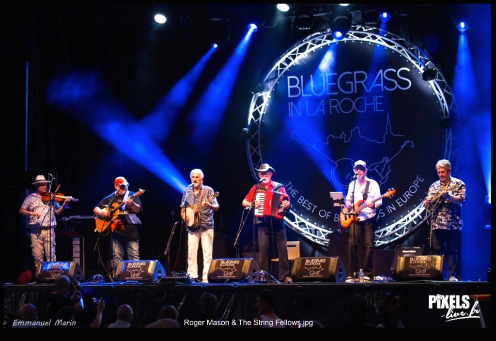 Roger MASON était annoncé comme une des vedettes du festival. “Une légende du bluegrass” selon la présentatrice Stéphanie Colin, vite rectifié en “légende du cajun” par Bertrand Cocquegniot, banjoïste très actif dans les années 70 et 80 et qui a formé les String Fellows quand il a pris sa retraite professionnelle. En fait, Roger Mason est surtout connu en France pour une méthode de guitare finger picking et quelques chansons parues au début des années 70. C’était bien avant la naissance de Stéphanie. La prestation de Roger Mason avec les STRING FELLOWS a été poussive, malgré l’évidente bonne volonté de Christian Poidevin (bss) et Jean-Marie Daviaud (mdo) de dynamiser le set. L’alchimie ne se fait pas entre le chanteur cajun américain et les musiciens bluegrass français. Il y a des moments où ils se perdent. Alors que la plupart des formations jouent de façon groupée, Roger Mason et les String Fellows sont six et ils sont alignés sur toute la largeur de la scène ce qui ne doit pas faciliter la cohésion. Tous les tempos sont les mêmes. Christian Poidevin fait trop de fioritures à la basse. Ils alternent standards bluegrass et cajun. Roger Mason chante une version de City Of New Orleans en français peu convaincante. Plutôt que cette quasi traduction, j’aurais préféré la version originale ou même l’adaptation (plus que libre) de Joe Dassin. Roger Mason chante son grand succès, Le Blues de la Poisse, seul à la guitare. Les String Fellows font ensuite trois titres sans lui et c’est le moment que j’ai préféré. Christian Poidevin chante le beau Mountain Pass de Dan Fogelberg et Hervé Nicolle interprète Carolina In The Pines et le swing Dixie Cannonball qui m’a semblé le meilleur morceau du set (allez savoir pourquoi, les bluegrasseux français sont souvent à l’aise dans le swing) et un des moments où Jean Darbois (fdl) a paru le plus concerné. En rappel, l’instrumental Cajun Grass Two Step n’était pas mal.