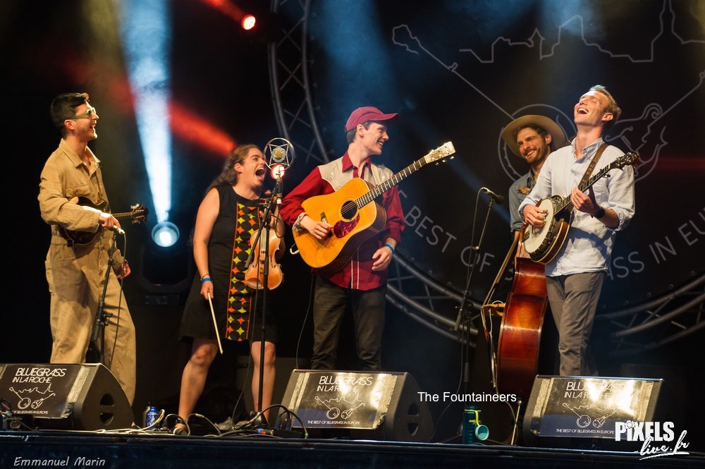 C’est RAPIDGRASS qui clôturait la soirée du samedi. Le groupe du Colorado est sans doute la formation qui a le plus souvent joué à La Roche. Ses musiciens animent les stages instrumentaux d’avant festival depuis plusieurs années. Mark Morris (gtr), Alex Johnstone (fdl), Coleman Smith (fdl) et Charlie Parker-Mertens (cbss) débutent le concert à quatre. On retrouve leur virtuosité instrumentale. Coleman Smith met le feu à partir de Gravity, un des titres phares de leur dernier disque Take Him River (Le Cri du Coyote 166). Kyle James Hauser, ancien banjoïste du groupe, les rejoint sur scène. Il chante un reggae qu’il a écrit avec une voix de baryton très agréable. Il enchaîne avec un titre qu’il accompagne en clawhammer. Entre alors le dobroïste Billy Cardine qui gravite lui aussi autour du groupe depuis pas mal de temps. Avec cinq solistes, les breaks s’enchaînent sur les instrumentaux. Ça fuse de tous côtés. Charlie Parker-Mertens prend son tour à l’occasion. Ce doit être la sixième ou septième fois que Mark Morris se produit à La Roche (il était venu avec Hickory Project avant de former Rapidgrass) et il nous surprend encore en chantant superbement le classique country Highwayman. Sa voix parvient à évoquer à la fois Willie Nelson et Johnny Cash. En bon jamband, Rapidgrass développe le titre avec de longues parties improvisées (pour être honnête, c’était un peu trop long côté dobro mais Charlie Parker-Mertens a été royal). Mark enchaîne dans un tout autre style avec Riders In The Sky. Chaque fois que Rapidgrass est sur scène à La Roche-sur-Foron, ils invitent Christopher Howard-Williams à chanter avec eux un titre de Grateful Dead, groupe pour lequel ils ont une dévotion commune. Changement de programme cette année avec un medley de Time, Brain Damage et Eclipse, trois chansons du grand album de Pink Floyd, Dark Side Of The Moon. Arrangement fidèle à l’esprit de l’original avec bruits d’horloges en intro. La réussite du titre doit beaucoup aux interventions de Billy Cardine qui remplace David Gilmour dans le rôle du soliste céleste. Christopher s’est un peu pris les pieds dans le tapis au début mais il y a eu de jolis passages en duo avec Mark et il a très bien fait les rires idiots du “lunatic on the grass”. On est allé se coucher ravis après Happy Trails, excellent titre de l’avant-dernier album de Rapidgrass, en rappel.