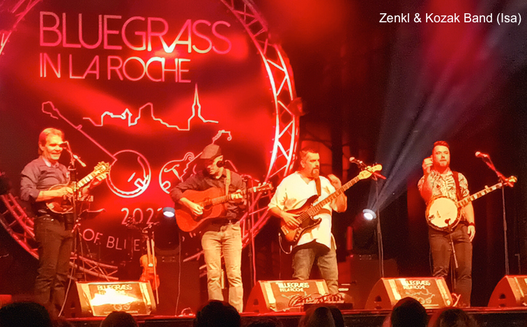 Après quatorze éditions du festival sur lesquelles se sont déversées des légions de groupes tchèques, souvent talentueux, au point de truster les victoires et les places d’honneur du concours de groupes, on est surpris de découvrir qu’il existe des musiciens tchèques majeurs qui n’étaient pas encore venus à La Roche. C’était pourtant le cas du mandoliniste Radim Zenkl, présenté par le toujours dynamique et pertinent Philippe Ochin comme un des meilleurs mandolinistes européens. Il était accompagné par le groupe ZENKL & KOZAK BAND, en fait une formule étoffée (avec un banjoïste et un bassiste) du duo qu’il a formé avec Ondra Kozak . Ce dernier est un habitué du festival puisqu’il était présent pour la douzième fois et il restera probablement à jamais le recordman des victoires du concours de groupes : quatre victoires avec quatre groupes différents. Le duo se suffirait à lui-même car Zenkl et Kozak ont de multiples talents. Ondra Kozak avait gagné le concours en tant que fiddler puis mandoliniste et enfin comme guitariste et chanteur lead. Cette année il a aussi joué du dobro (reviendra-t-il au banjo l’an prochain?). Zenkl est un très bon mandoliniste mais c’est aussi un flûtiste virtuose (sur un instrumental où le banjoïste David Benda a fait plus que jouer les utilités) et il a joué du didgeridoo sur Groundhog chanté par Ondra Kozak. Il présente les morceaux avec humour. Zenkl et Kozak ont chanté en tchèque, en anglais (New Highway de David Parmley & Continental Divide, Lila écrit et chanté par Zenkl, Sally Ann que Kozak faisait déjà avec son groupe East West) mais aussi de très jolie façon en duo en gaélique. Le plus intéressant était néanmoins la partie instrumentale de leur set. Zenkl a fait une démonstration de sa technique toute personnelle employant deux doigts de la main droite lui permettant de jouer de la mandoline en tremolo accompagnée d’un accompagnement semblable à un pizzicato de violon (sauf que c’est lui qui fait tout). Joli et remarquable. Ensemble, ils ont aussi joué Twin Peaks (une compo de Zenkl), Milestones de Miles Davis (avec un énorme groove du bassiste Jiri Valek) et ils ont terminé sur une excellente version de l’instrumental porto-ricain El Cumbanchero, devenu un cheval de bataille de la mandoline bluegrass depuis son adaptation par Jesse McReynolds.