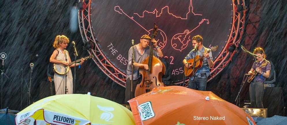 JUST AS BLUE est un groupe suédois centré sur sa chanteuse, la guitariste Ulla Tanggaard. Elle porte une robe rouge bien voyante. Ses trois musiciens (bjo, fdl, cbss) sont tous en noir et blanc et ils sont plutôt discrets : peu de solos de banjo et des solos de fiddle avec peu de notes, longuement tenues à l’archet. Jörgen Berg joue plusieurs titres en clawhammer. On est à mi-chemin entre bluegrass et folk moderne. Vestimentairement comme musicalement, tout est fait pour mettre en valeur le songwriting et la voix de la chanteuse (Crooked Road, Been A Long Time).
