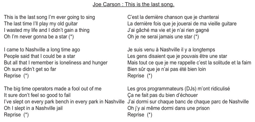 Figure tragique dans un panthéon qui n’en manque pas, Joe Carson (1936-1964) décède des suites d’un accident de voiture alors qu’il n’a que 27 ans. Dans cette chanson cosignée par Jerry Allison et Sonny Curtis (deux des Crickets de Buddy Holly) il étale un contenu dépressif où le sentiment d’échec se retourne contre l’interprète, sans totalement en imputer la responsabilité au système. Chanson bilan d’un rêve définitivement brisé : il ne sera jamais une star. (NB : Le titre fut repris par les Everly Brothers et Vernon Oxford).