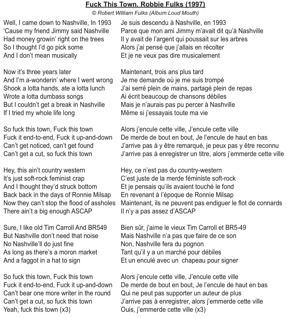 Music City tient, depuis les années 50, le rôle d’une capitale légendaire où se font les carrières. Epicentre de la Country Music des années 1960-70, secouée par les Outlaws et les Néo-traditionnalistes, capitale contestée par Austin et Bakersfield, elle a tout digéré, du Punktry au Nashpop et continue d’exercer son aura. Et pourtant, la violence d’un système qui pense aux dollars avant l’Art (“show business”) est partie prenante de l’expression de ceux qui ont tenté d’y trouver gloire et fortune. L’échec laisse sur le rivage, après la marée, nombre d’épaves humaines, broyées, clochardisées et maltraitées. La vérité en trois accords relate depuis longtemps ces trajets à l’antipode du rêve américain.