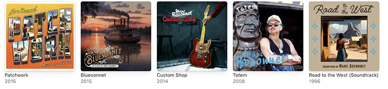 Aujourd’hui Marc Bozonnet a ses albums publiés sur le web par Apple et aborde tous les styles : cajun, country, folk-blues, blues électrique, rock ’n’ roll, musique latine avec sa guitare, son banjo ou son accordéon cajun. Il a même sorti un volume de guitare baryton, comme Duane Eddy ou les Shadows. Une virtuosité exceptionnelle… © (Romain Decoret)