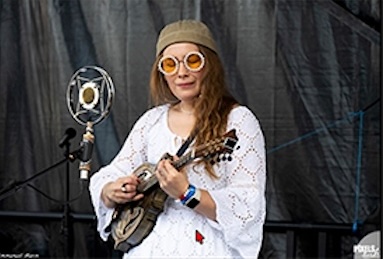 La mandoliniste russe Olga Egorova était la dernière à se produire sur la scène du midi (la scène du soleil dirait Gilles Assier qui filme la plupart des concerts). Elle joue seule depuis le décès de son compagnon et guitariste Roman avec qui elle formait Duo RO. Elle a joué un instrumental alambiqué avec des harmoniques, un medley folk slave, du Tchaïkovski (un extrait de Casse-Noisette qui m’a paru d’une virtuosité extrême), du Chris Thile. Quand elle chante, c’est très aigu et ça semble souvent déconnecté de l’accompagnement. Bref, pas facile à suivre à part une jolie compo intitulée The Roots. A la fin les Rapidgrass sont revenus accompagner magistralement Olga sur une épatante et décoiffante reprise de Stingray de Sam Bush (peut-être bien mélangée avec du David Grisman) et une chanson. C’était superbe.