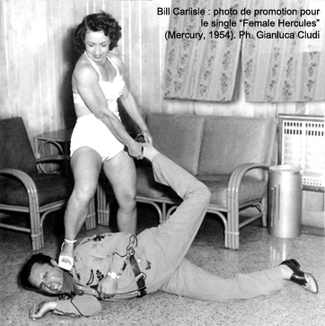 Contre-exemples Ce tableau accablant, et parfois comique dans ses outrances, reflète les préjugés d’une époque. On serait tenté d’y voir la matière suffisante et nécessaire pour jeter le discrédit définitif sur un genre musical déjà accusé (à tort, nous l’avons déjà démontré ici) de véhiculer exclusivement stéréotypes racistes et politiquement réactionnaires. Or la réalité est plus complexe, plus riche, plus ambivalente. La lutte pour la dignité des femmes, la dénonciation du machisme le plus crasse ont toujours existé en parallèle aux tendances régressives. Les Carlisles en 1954 ont une réputation de groupe comique, trio dynamique et proto Rockabilly de Hillbilly-Bop, ils se spécialisent dans un répertoire gaillard et allusif. Hercule femelle est un marqueur de la transition en cours, au schéma de l’agression sexuelle implicite se substitue une inversion des rôles : c’est l’agresseur qui se fait démolir par une femme forte qui prend le dessus.