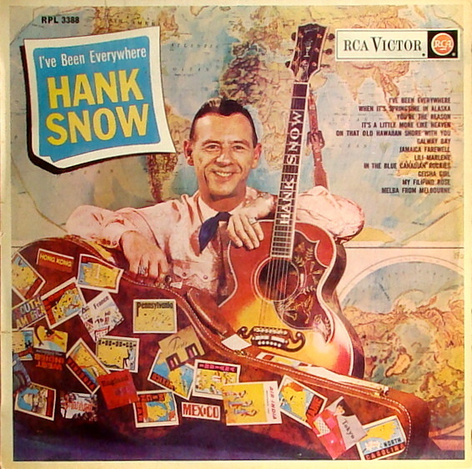 Hank Snow a sorti l’album “I’ve Been Everywhere” en 1963, avec une jolie jaquette aux couleurs vives comme on aimait les faire à l’époque. La chanson du même titre a eu un certain succès à la radio et aux émissions live de l’époque. Elle raconte l’histoire d’un stoppeur qui cite les villes qu’il a vu lors de ses périples, citant 91 villes en tout dans un style mitraillette. Mais Hank Snow a-t-il vraiment visité toutes ces villes ? Ce n’est pas impossible, car il a tourné pendant plus de 60 ans et a donné des milliers de concerts. Mais, il n’a pas écrit cette chanson. La version originale était d’un artiste australien, Geoff “Tangletongue” Mack et les villes citées étaient australiennes. Il dit qu’il a écrit la chanson un soir lors d’un épisode aigû de “reflux acide”. Pour se distraire, il a sorti une carte… et a écrit cette chanson qui a été enregistrée par plusieurs artistes, dont Johnny Cash.