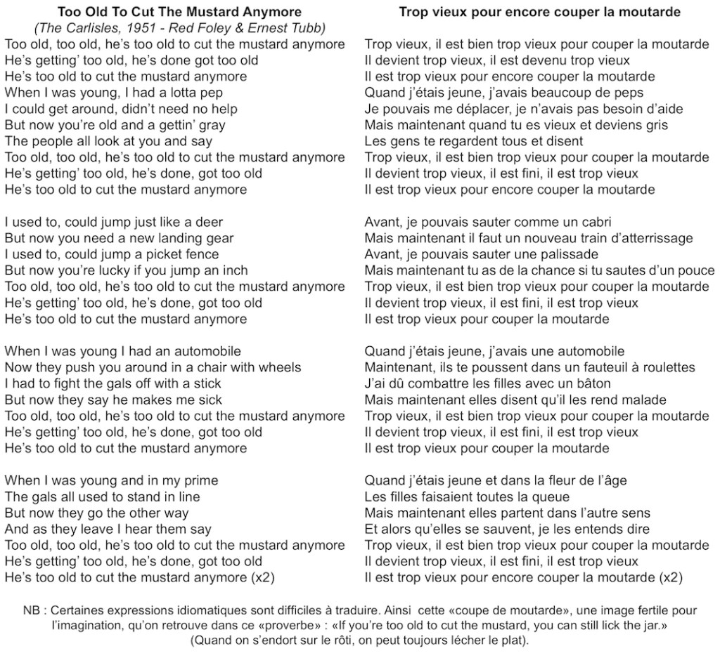 Le constat des limites et du délabrement n’est pas une nouveauté. Les Carlisles dans les années 50 produisaient un hillbilly-bop sec et excité que nous avons déjà cité dans de précédents articles pour leur appétence à s’affranchir des limites du bon goût et des convenances. L’amusante chanson qui suit, basée sur un dialogue comparatif, touche à l’universel. Elle dédramatise par l’humour le bilan peu réjouissant. Une fois de plus, ce n’est pas tant dans les limites physiques que la perte est la plus amère, c’est dans le pouvoir de séduction que ça se joue.